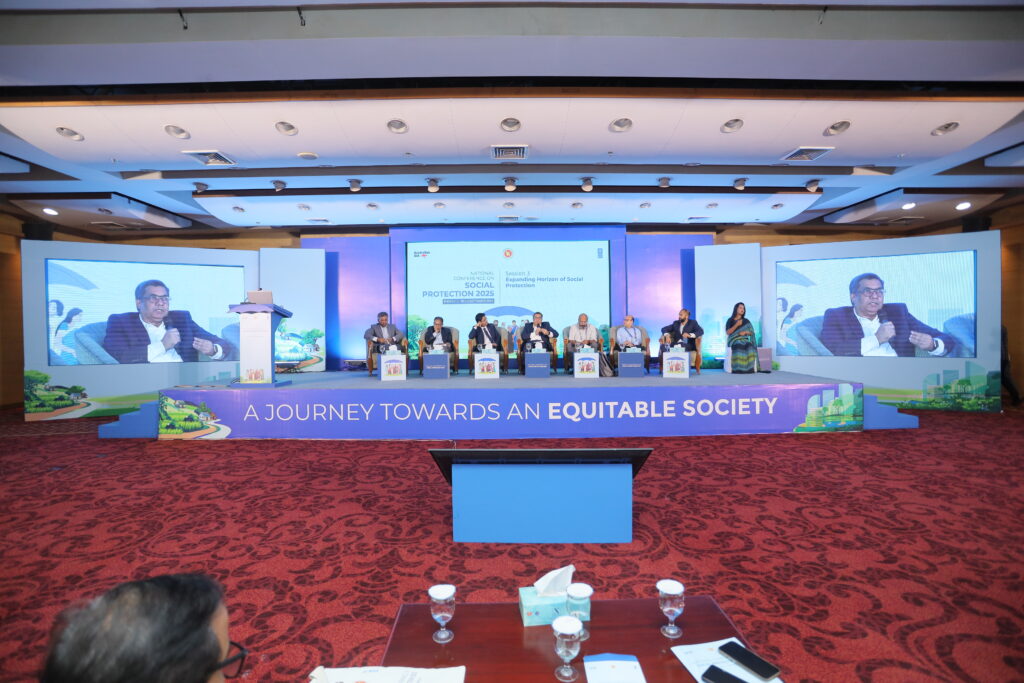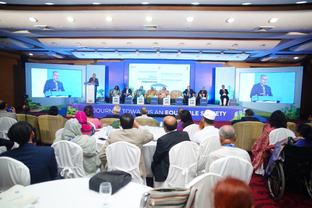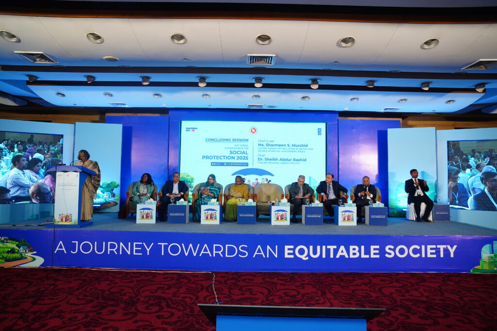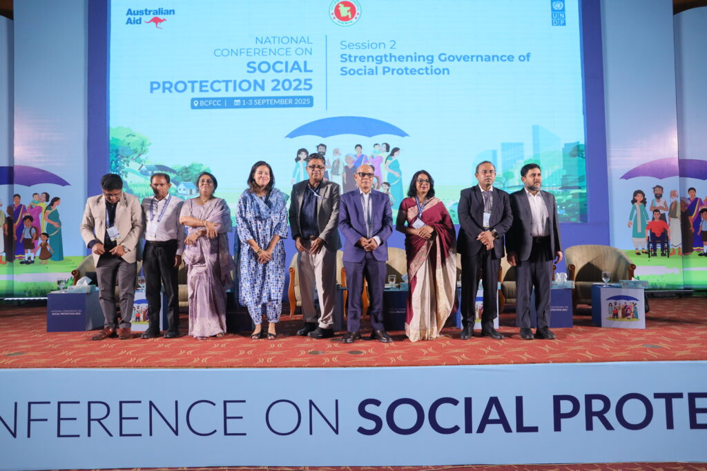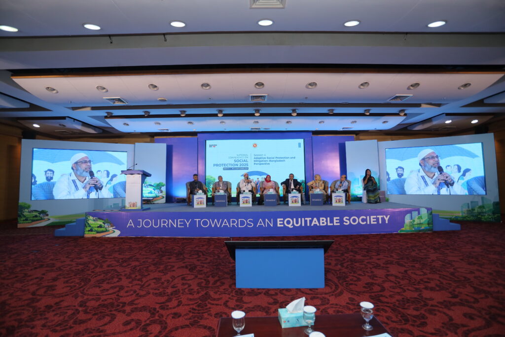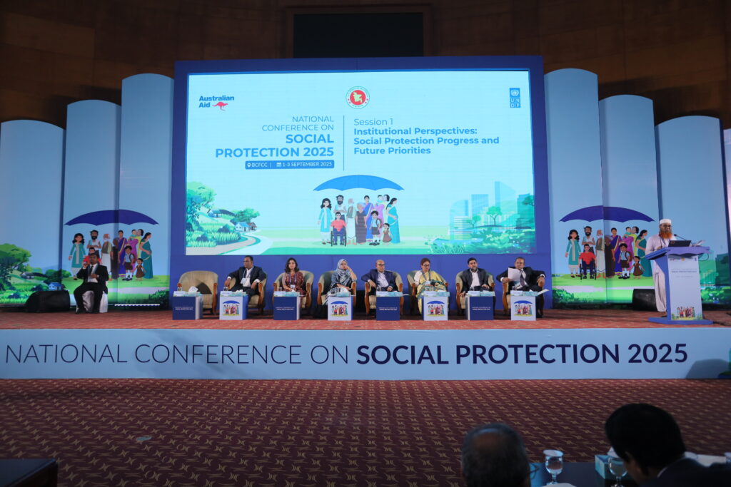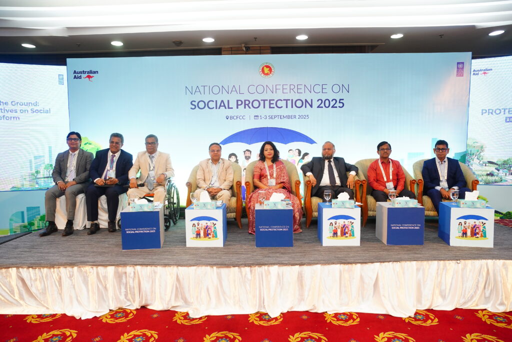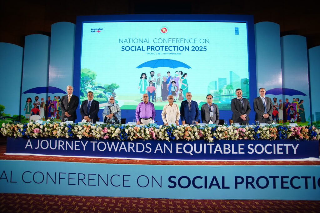 The National Conference on Social Protection 2025, held from 1–3 September 2025 at the Bangladesh-China Friendship Conference Centre, served as a high-level platform to revisit and shape the future of Bangladesh’s social protection system as the National Social Security Strategy (2015–2026) nears its conclusion. Anchored in the theme “A Journey Towards an Equitable Society”, the conference brought together government leaders, development partners, civil society, academics, and private sector actors to critically assess progress, share innovative approaches, and chart strategic directions for a more inclusive, shock-responsive, and sustainable framework. Through multi-stakeholder dialogues across thematic sessions, the event generated actionable recommendations to guide the country’s post-2026 social protection strategy, reinforcing Bangladesh’s commitment to poverty reduction, gender equality, and climate resilience within its broader vision of building a more just and equitable society.