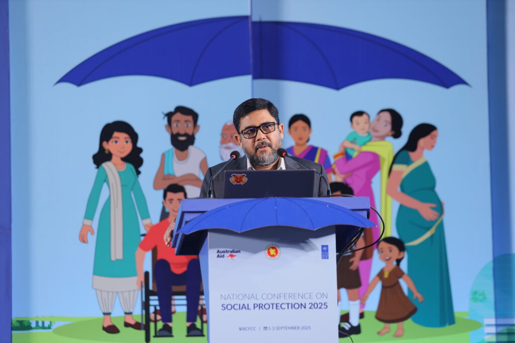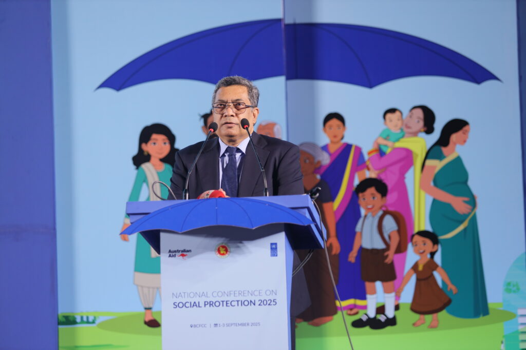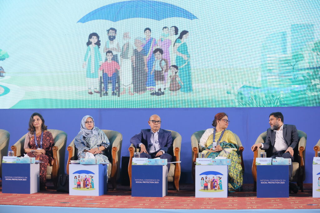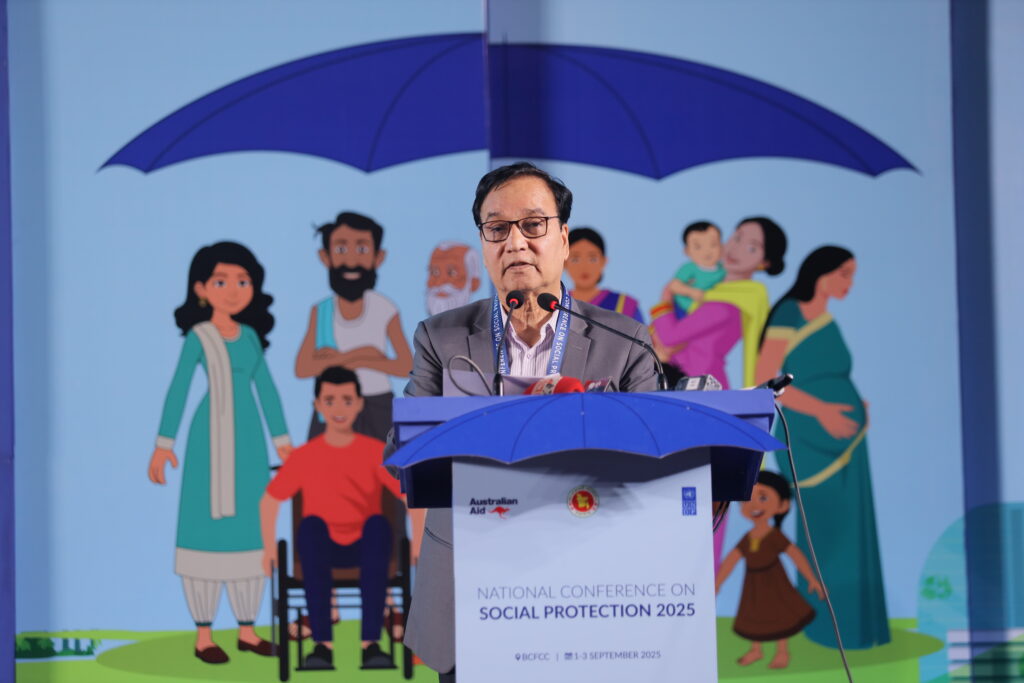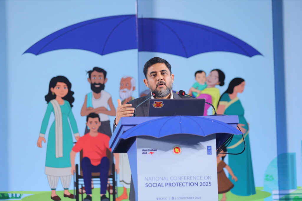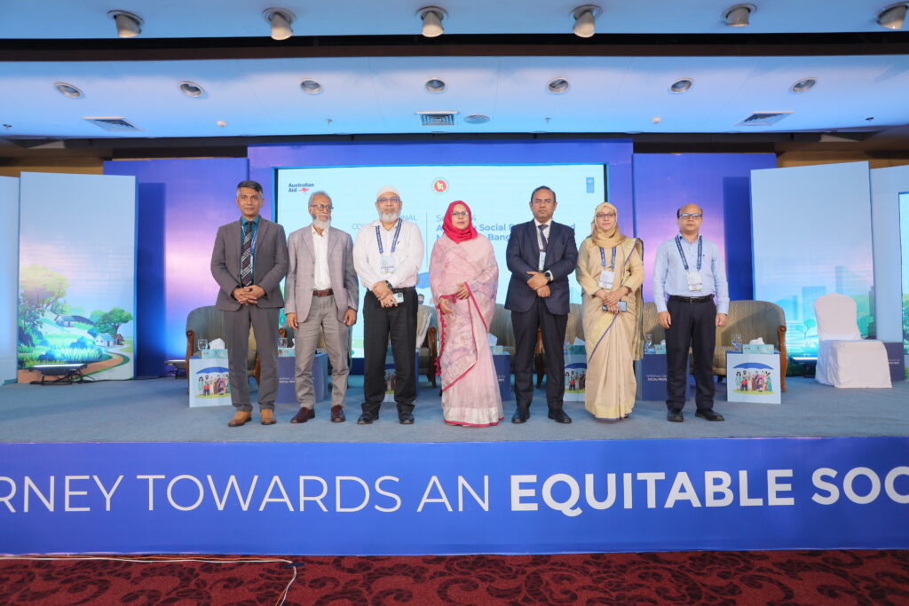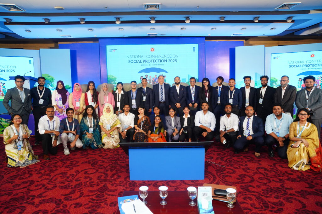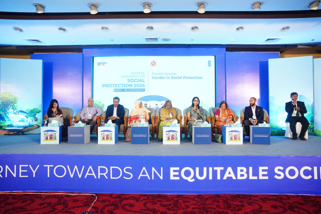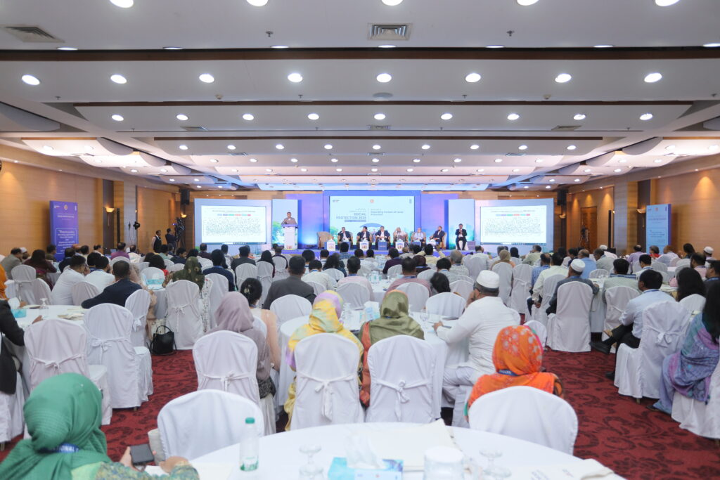 The National Conference on Social Protection 2025, held from 1–3 September 2025 at the Bangladesh-China Friendship Conference Centre, served as a high-level platform to revisit and shape the future of Bangladesh’s social protection system as the National Social Security Strategy (2015–2026) nears its conclusion. Anchored in the theme “A Journey Towards an Equitable Society”, the conference brought together government leaders, development partners, civil society, academics, and private sector actors to critically assess progress, share innovative approaches, and chart strategic directions for a more inclusive, shock-responsive, and sustainable framework. Through multi-stakeholder dialogues across thematic sessions, the event generated actionable recommendations to guide the country’s post-2026 social protection strategy, reinforcing Bangladesh’s commitment to poverty reduction, gender equality, and climate resilience within its broader vision of building a more just and equitable society.