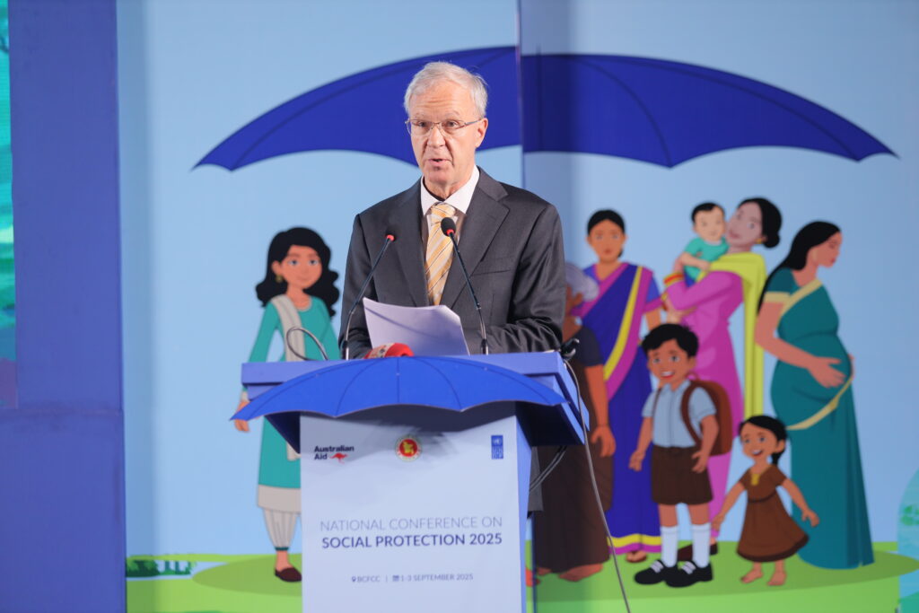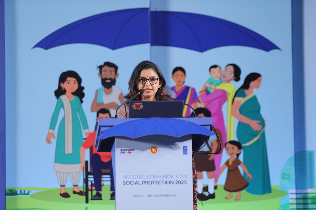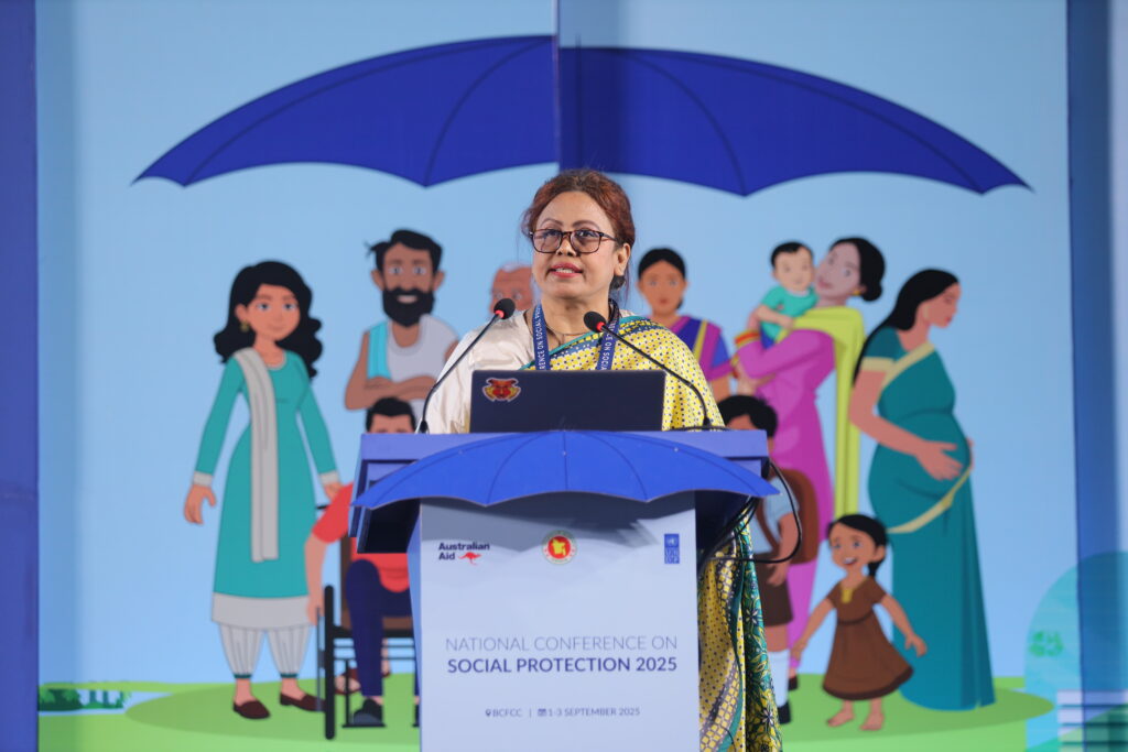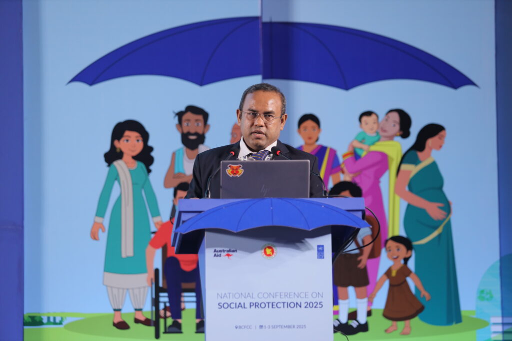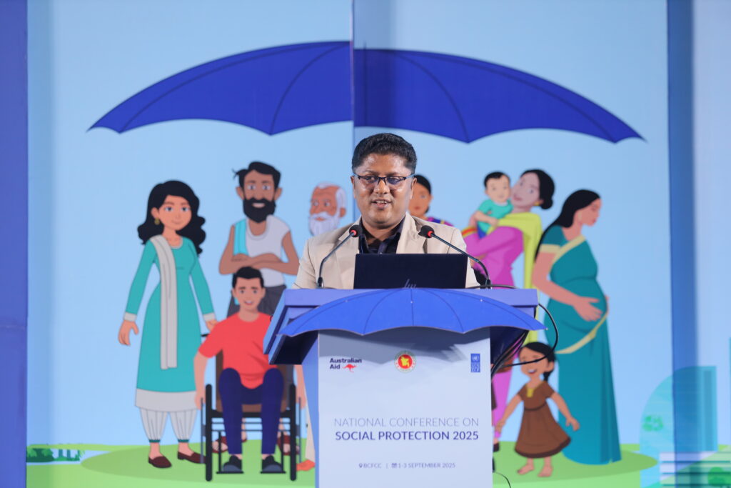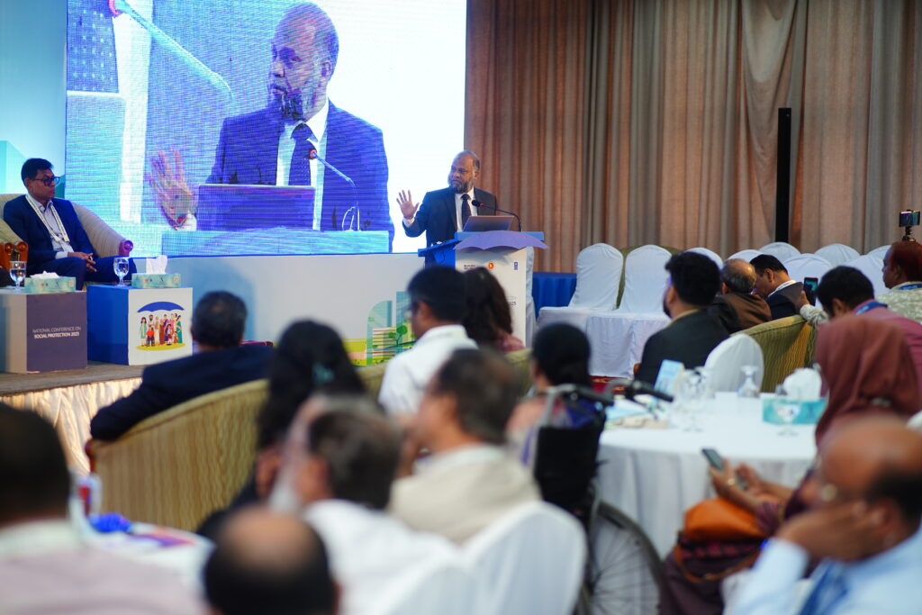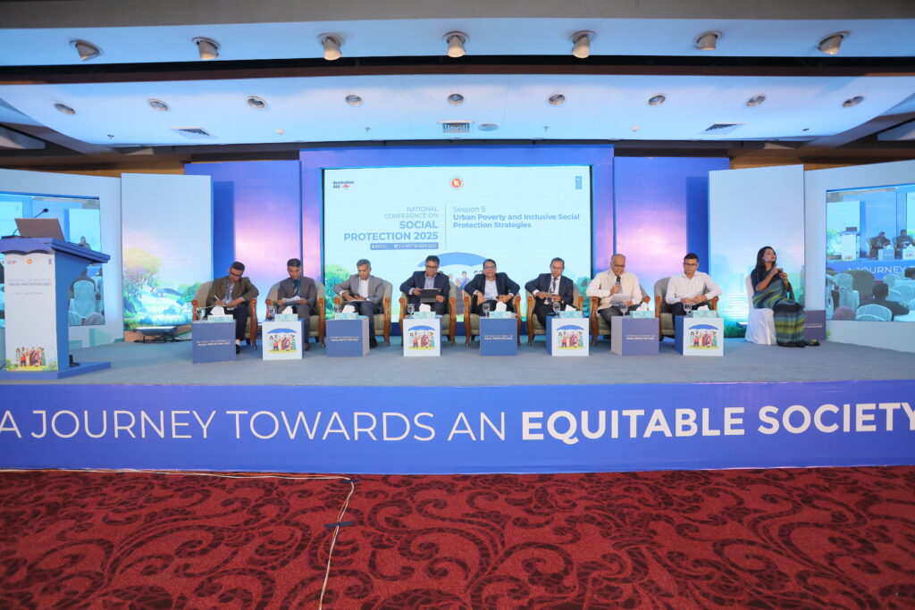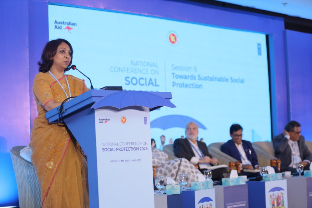 The National Conference on Social Protection 2025, held from 1–3 September 2025 at the Bangladesh-China Friendship Conference Centre, served as a high-level platform to revisit and shape the future of Bangladesh’s social protection system as the National Social Security Strategy (2015–2026) nears its conclusion. Anchored in the theme “A Journey Towards an Equitable Society”, the conference brought together government leaders, development partners, civil society, academics, and private sector actors to critically assess progress, share innovative approaches, and chart strategic directions for a more inclusive, shock-responsive, and sustainable framework. Through multi-stakeholder dialogues across thematic sessions, the event generated actionable recommendations to guide the country’s post-2026 social protection strategy, reinforcing Bangladesh’s commitment to poverty reduction, gender equality, and climate resilience within its broader vision of building a more just and equitable society.